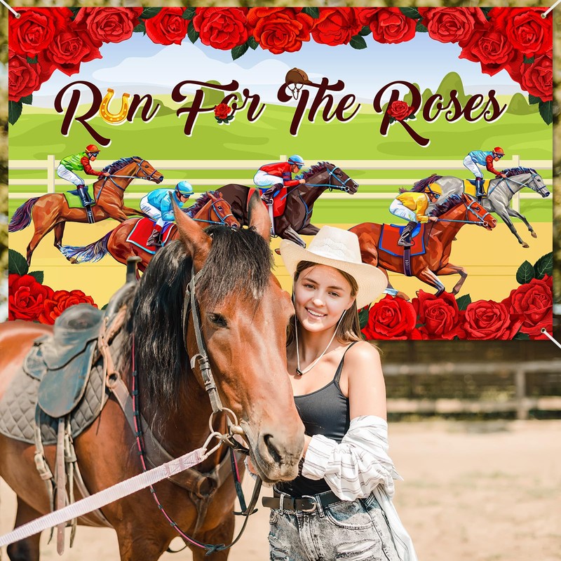 Mocsicka Kentucky Derby Fence Banner Run for The Roses Horse Racing Themed Party Decorations Photo Booth Prop