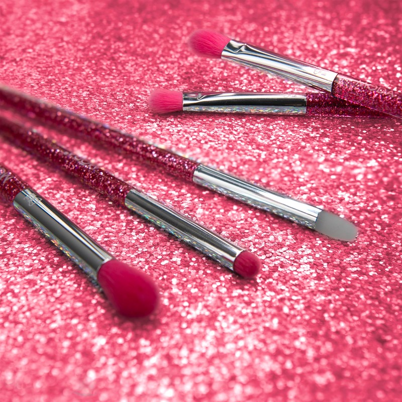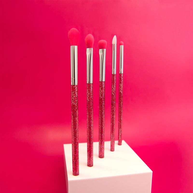 Moda Neon Pink Glitter Eye Kit – 5pc Vegan Makeup Brush Set for Sparkling Eye Looks