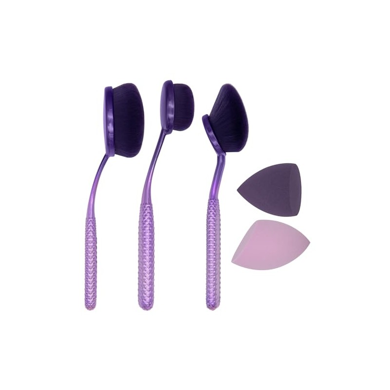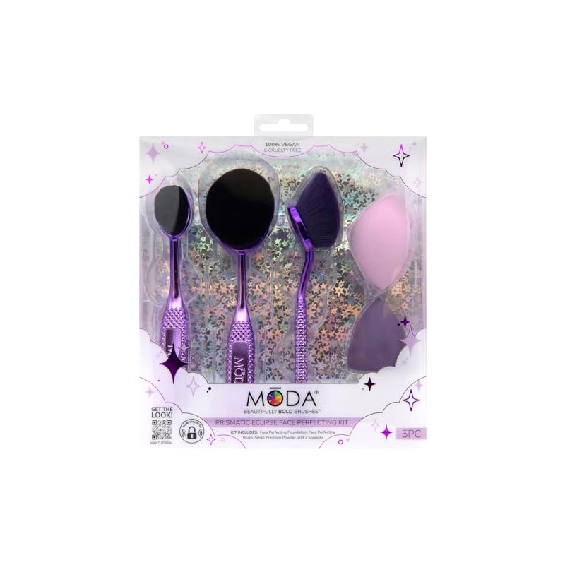 - Achieve stellar skin with the MODA Prismatic Eclipse 5PC Kit, featuring oval brushes and sponges to blend and perfect your foundation, powder, and blush.
