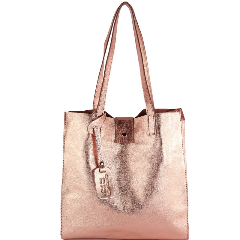 modamoda de - T247 - Ital. leather shopper with removable inner pocket (Roségold metallic)