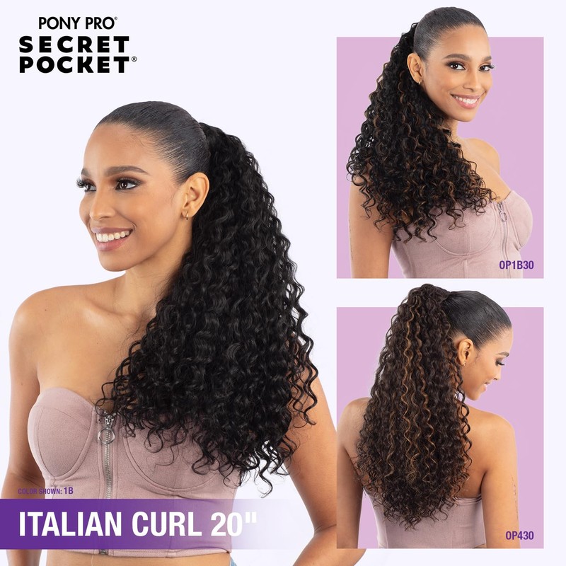 Model Model Pony Pro Ponytail Italian Curl 20" with Secret Pocket made by Pre-sewn Weave (Jet Black 1)