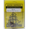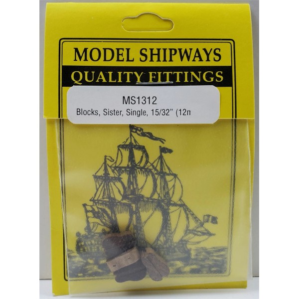 Blocks act as pulleys used in conjunction with the miles of line that make up the running rigging. They multiply the force exerted by the crew, enabling yards and sails to propel ships 2000 tons or larger. The more parts a tackle has (rope "legs" between two blocks, determined by the number of sheaves in the blocks), the more the motivating force is multiplied, and the heavier the object which can be moved.Blocks came in many sizes and of one, two, three, even four sheaves. Note: Model blocks do not have scale sheaves. Instead, sheaves are represented by a hole in the block.