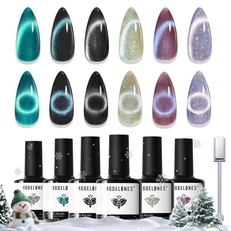 - Tips: Hold the magnetic stick -mm above the surface for - seconds to achieve your desired effect! [ What You Get ]: Colors of blue green purple black Holographic Glitter Cat Eye Gel Nail Polish Set (ml/. fl. oz each) + Double-Head Magnetic Stick for various cat eye designs. Each shade of Modelones D cat eye gel polish is expertly mixed with metallic magnetic glitter powders for a stunning, shiny finish. Different angles create different visual effects. Practice makes perfect!