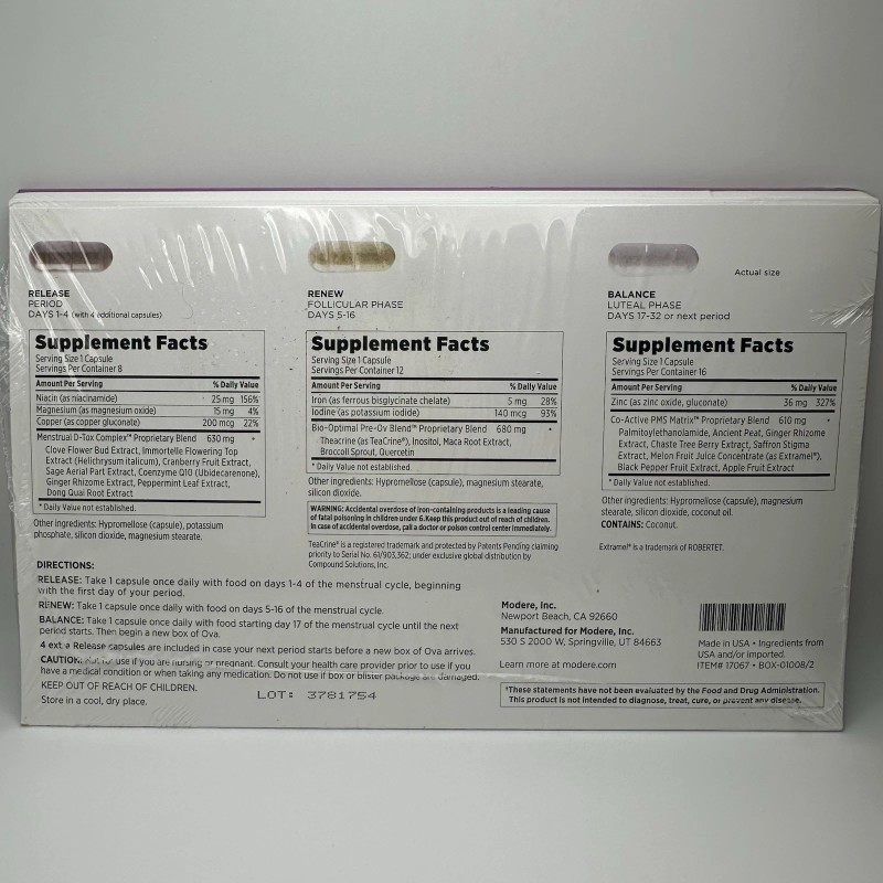 Modere Ova- Women’s Cycle Support, New And Sealed.