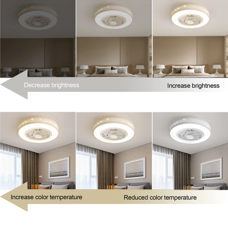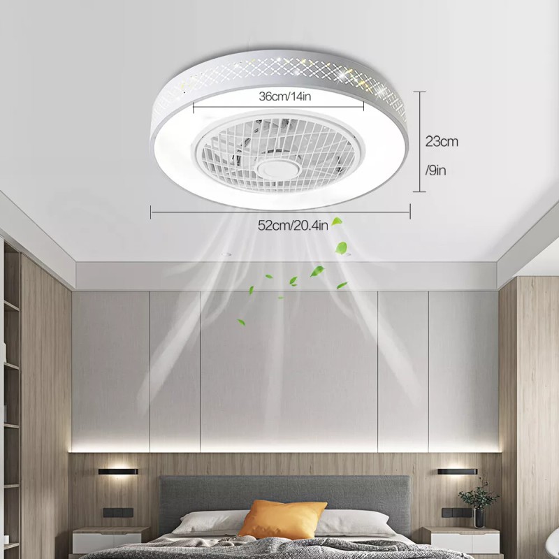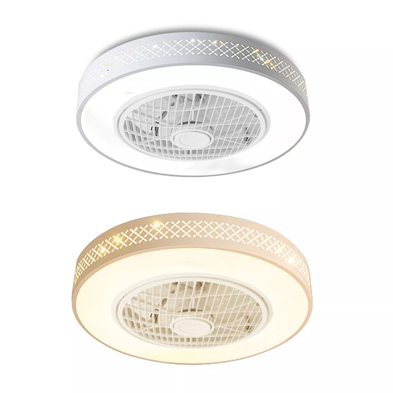 Modern 50cm Grid Ceiling Fan Light 30W 3 Speed Remote Control Chandelier Lamp
