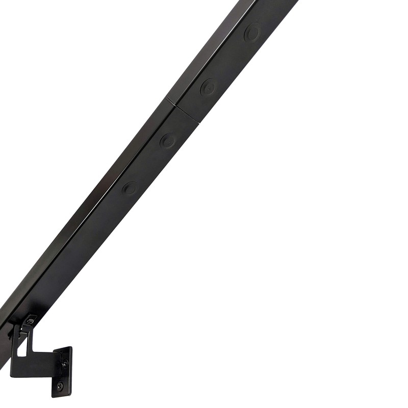 Free returns for 30 days from buyers receipt of the order. Kit includes Phillips head drill bit for installing brackets and rail, 3/16" drill bit for predrilling holes for screws into studs, and allen key for tightening the internal splice. Set includes one (1X) handrail and four (4X) handrail brackets with mounting hardware and (1x) internal splice. The 7 foot handrail comes in two pieces with an internal splice connecting them together as shown in the photos. The handrails are made from 2"x1" aluminum stock tube to allow for easy grabbing. High strength exceeds construction load requirements of 200lbs or more. The handrails are designed to have at least 1.5" distance from wall to the handrail to allow for continuous support along the handrail. The handrail brackets are designed to be mounted directly into wall studs. Comes with: (8X) #10x3/4" Screws for mounting the handrail (12X) #12x2" Screws for mounting into studs Each bracket has 2 mounting holes apiece to hold your handrail sturdily in place! Mounting hardware included. For indoor or outdoor use. The handrail brackets are made from 1/8 inch flat stock steel and 3/16 inch steel plate. Dimension of the mounted handrail brackets are 2.5" W x 3.5" H x 3" D. Matte black powder coat is a Semi-Gloss coat with a gloss level of 37-70%