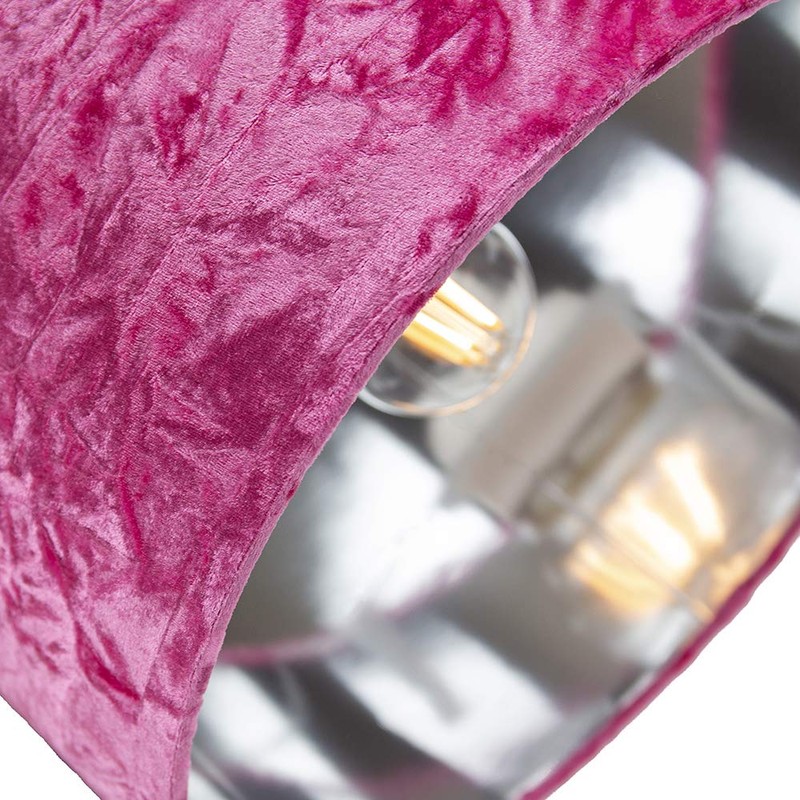 - Made of high quality bright pink crushed velvet fabric with unique shiny silver paper inner creating a stunning effect when the light bulb is switched on.