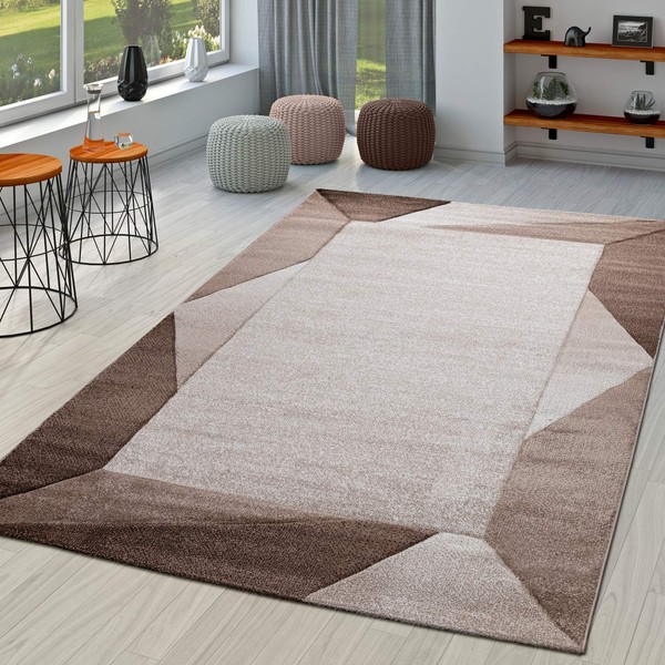 Modern Area Rug Bordered with Geometric Pattern in Brown Beige with Contour C...
