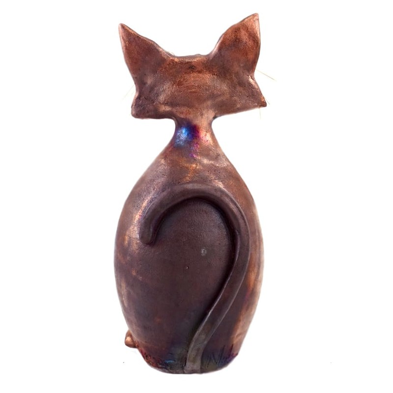 Modern Artisans American Made Whimsical Smiling Cat Raku Pottery Tabletop Sculpture, 8.25"