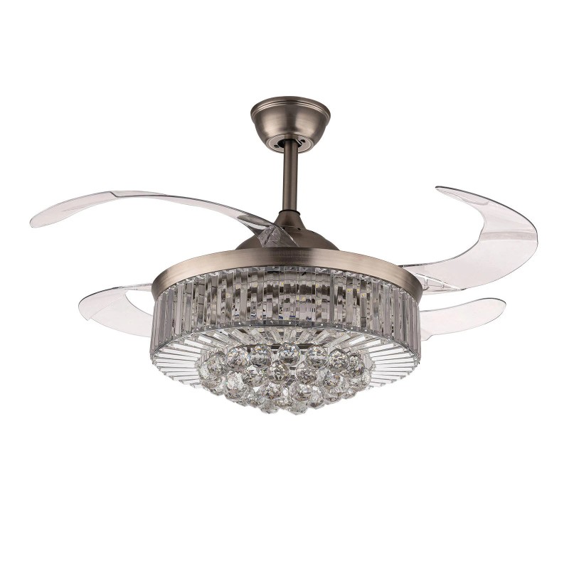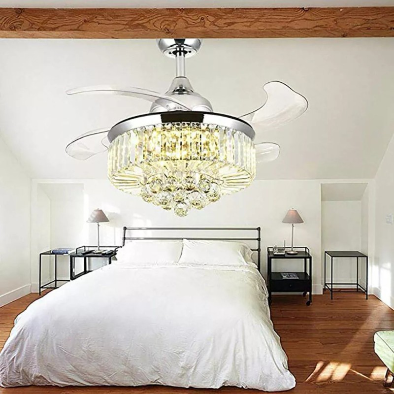Modern Crystal Ceiling Fan + LED Light Remote Noise-Free Chandelier