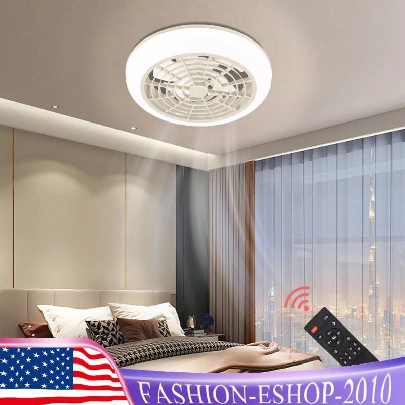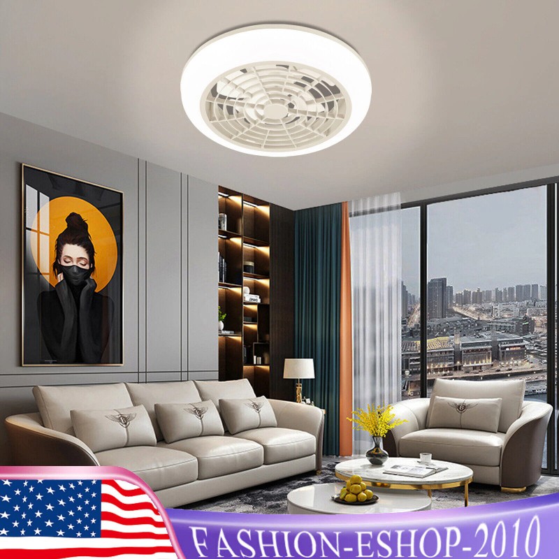 Modern Invisible Ceiling Fan With 3-Color LED Light Fan Chandelier with Remote