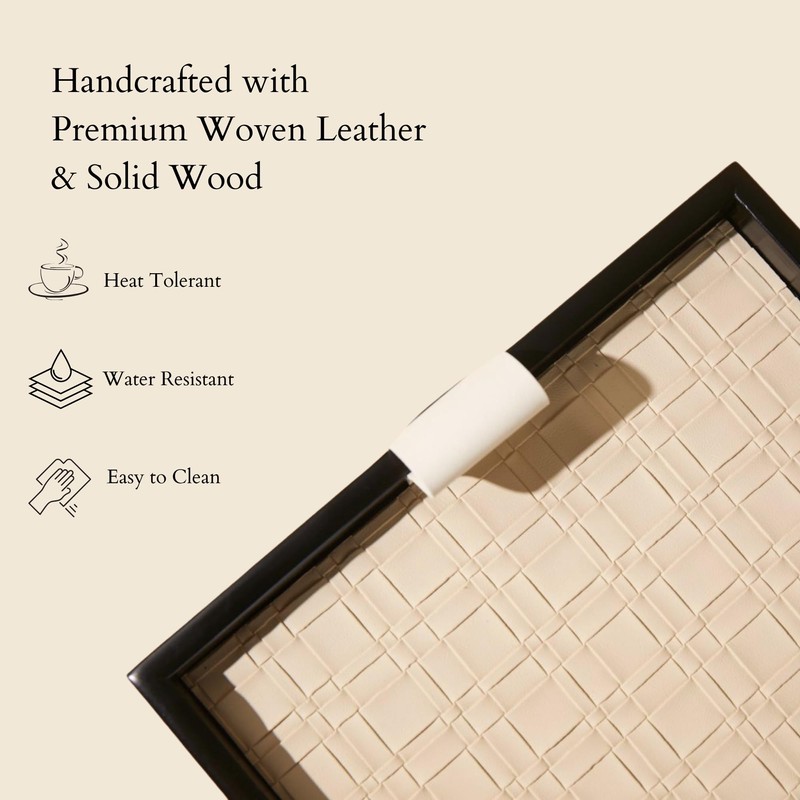 Modern Luxury 16"x11" Woven Leather and Wooden Rectangle Tray - Jewelry Tray, Vanity Tray, Decorative Tray, Catchall Tray, Serving Tray, and for All Occasions by Curated Collectives (Beige, Large)
