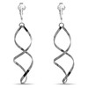 Modern Silver Dangle Clip On Earrings for Women & Clip-ons, Non-pierced Ears, Long Dazzling Drop (Silver Twist)