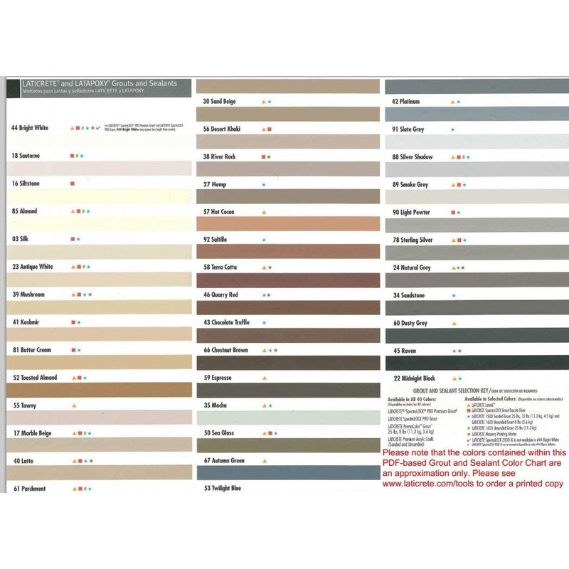 | Brand: | Modern Stone Laticrete Colors |
