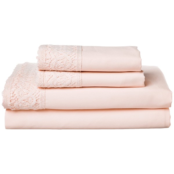 Modern Threads Soft Microfiber Crochet Lace Sheets - Luxurious Microfiber Bed Sheets - Includes Flat Sheet, Fitted Sheet with Deep Pockets, & Pillowcases Blush King