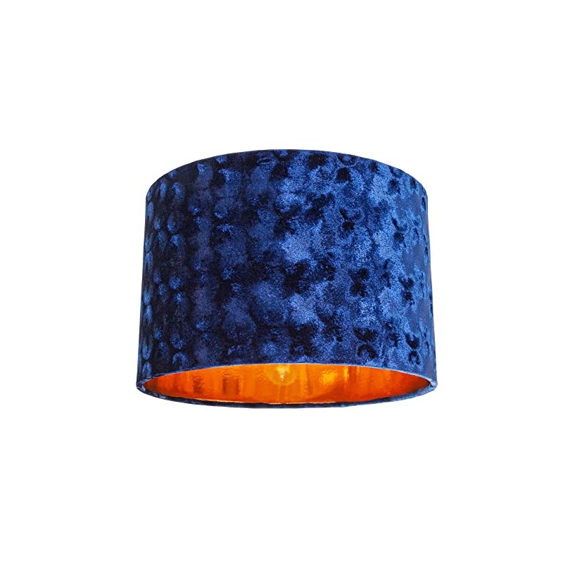 Modern Trendy Metallic Navy Midnight Blue Hammered Effect Crushed Velvet 12" Lamp Shade with Shiny Copper Inner | 30cm Diameter | 60w Maximum by Happy Homewares