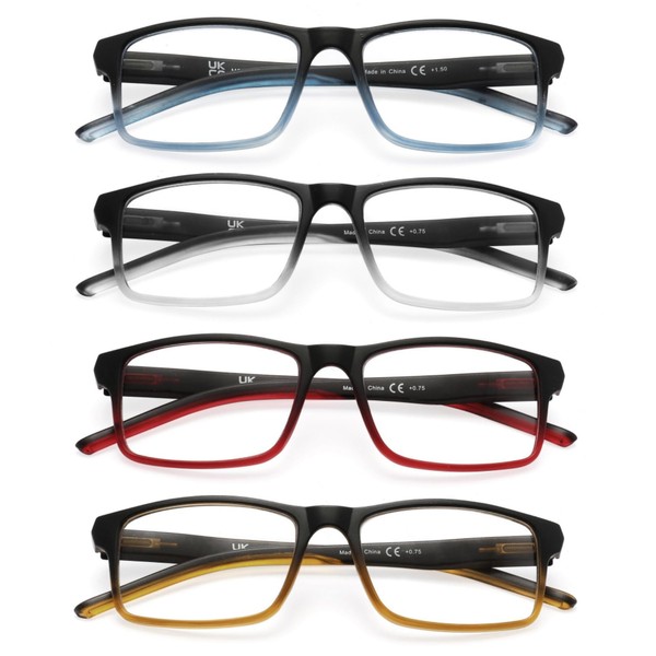 MODFANS Reading Glasses 4 Pack, Blue Light Blocking Readers, Anti Glare, UV Protection, Lightweight Comfortable Unisex Two-Tone Frames with Spring Hinge, Rectangular Design 3.5
