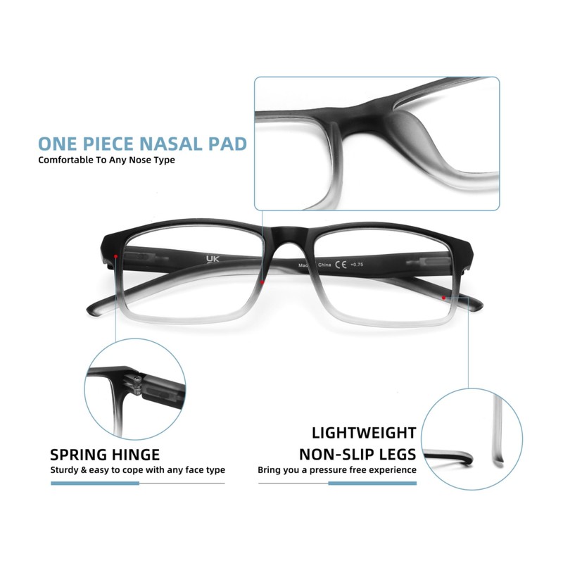 - Versatile and Stylish Design: Featuring spring hinges, reading glasses men adapt to most face and nose shapes, making them suitable for long-term use. The stylish full-frame design brings a modern touch, and the lightweight frame ensures comfort even during extended wear, whether you are at work or in casual settings.