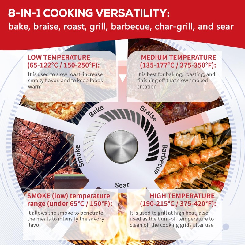 - TIMER & MEAT PROBE SETTINGS: The themometer controller Features a timer to track cooking duration and an alert system that notifies you when the meat probe reaches the target temperature.