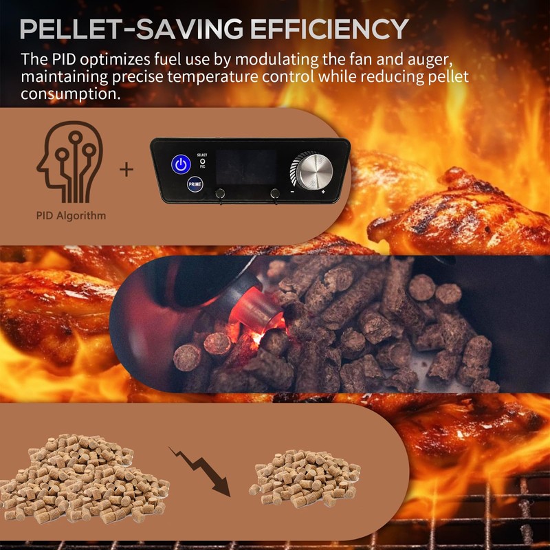 - Pellet-Saving Efficiency: The PID significantly reduces pellet consumption trough fan and auger motor modulation system, ensuring precise temperature control while maximizing fuel efficiency