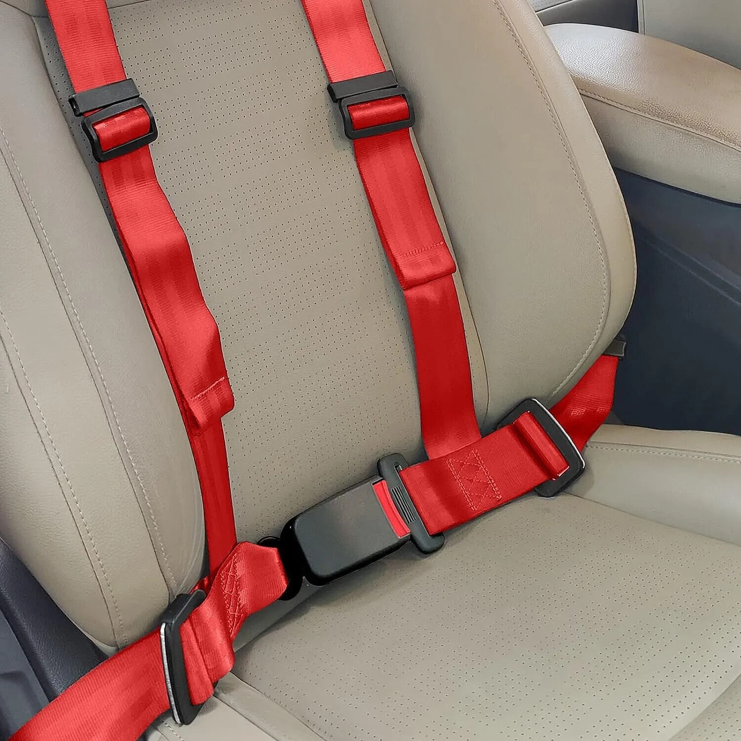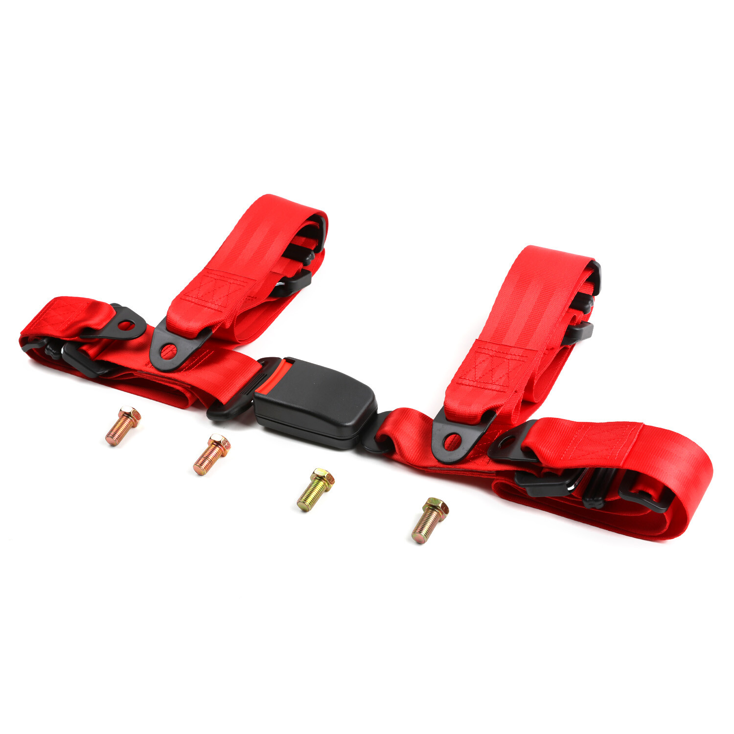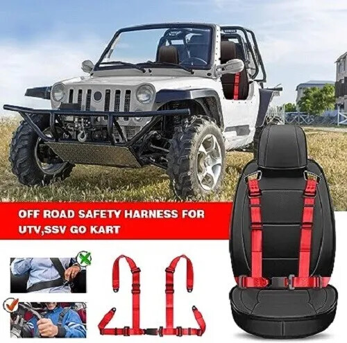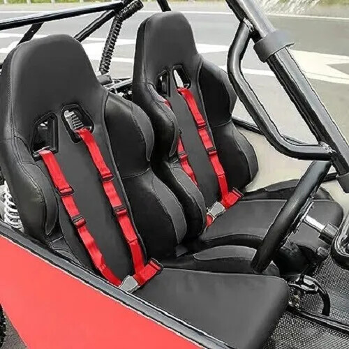 1 X UNIVERSAL RED 4 POINT BUCKLE RACING SAFETY SEAT BELT HARNESS Nylon Belts 2"