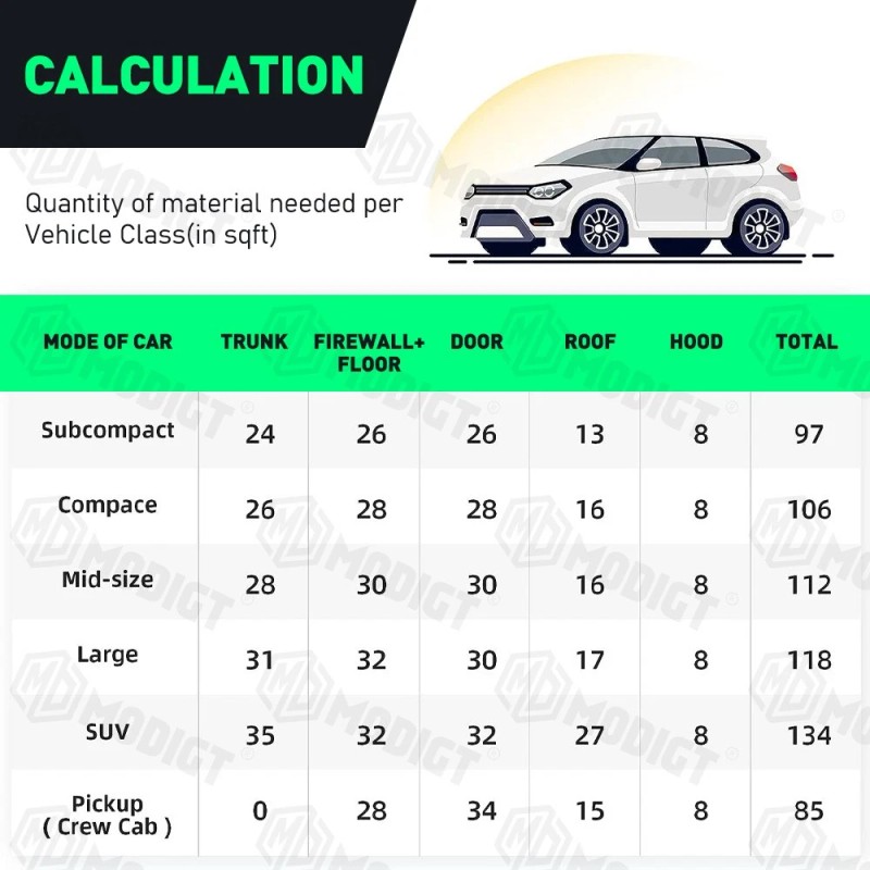 MODIGT 16"X10" 7mm Self-adhesive Car Sound Deadening Mat Noise Proof Deadener Adhesive