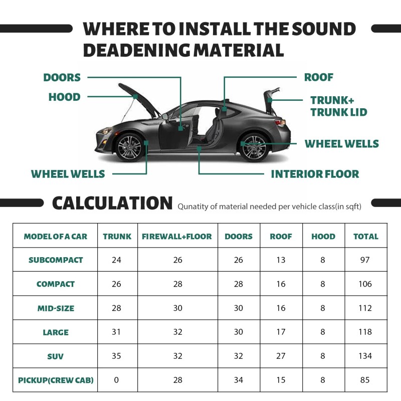 This car insulation will help reduce your interior temperature in the summer, keep you warm in the winter, reduce engine/tunnel/console.