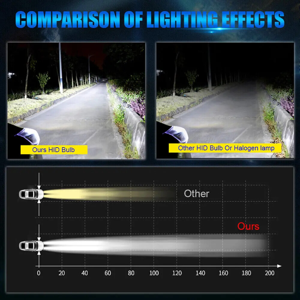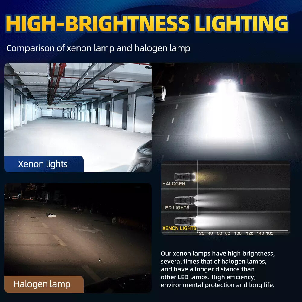Xenon HID (High Intensity Discharge) lamps provide twice the brightness*, making driving in any situation safer.The high-intensity white light produced by Xenon HID xenon car lights is comparable to daylight. Studies have shown that xenon car lights can help drivers focus on the road, and can identify obstacles and road signs faster than traditional car lights. Compared with ordinary halogen lights