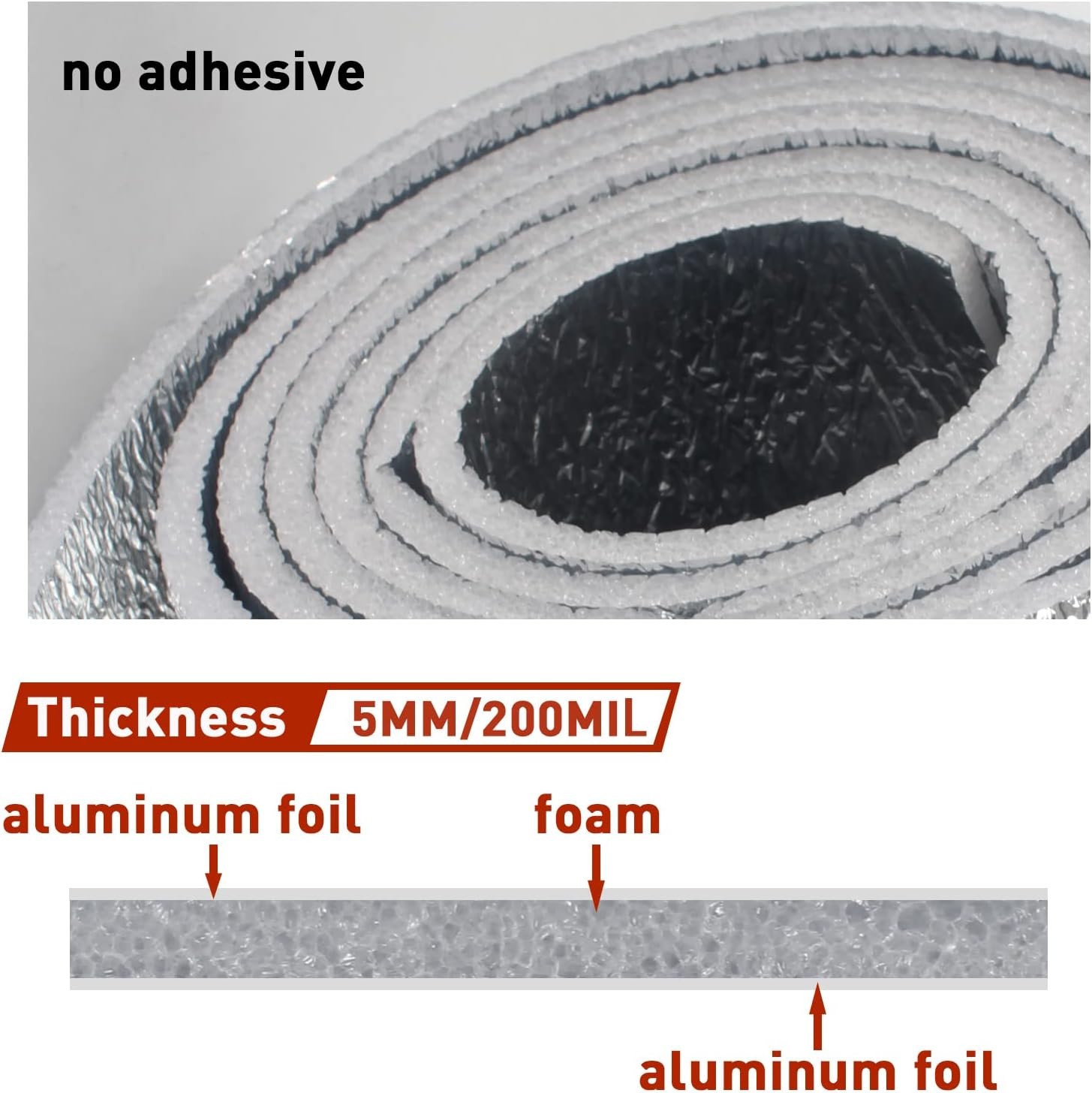 √Excellent Insulation Foam: This insulation foam is designed for reflects radiant energy, perfect Radiant Barrier with a highly compressible closed-cell foam formulation, it doesn’t absorb moisture and has no odor.The materials adopted are non-toxic,will not irritate skin, eye or throat, non allergic.