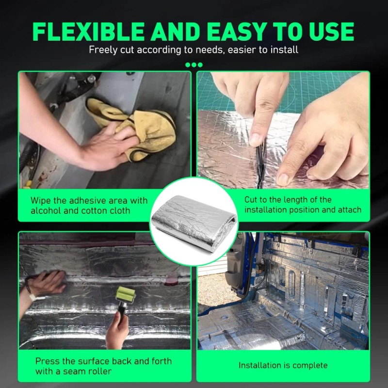 - This Sound Deadener comes in many sizes to choose , can put the Sound Deadener where you need it, also can be cut the size you needed.And this product also easy to cut and installation.