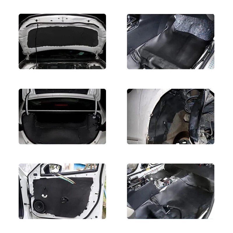 Feature: 1) This product is 100% brand new. 2) Can be used for the entire interior of any vehicle including: floor panel, door, carpet under/seat, headliner/roof, trunk, trunk lid, firewall (internal side). 3) By reducing or suppressing the sound vibration of the metal plate, you can eliminate road noise. 4) Easy to install, suitable for various car models, simply trim pieces to fit, peel and place and hand roll to ensure good adhesion. No messy spray paint or adhesive is required to install this product. 5) This car insulation is used in many applications, such as muscle cars, hot rods, light cruisers, imports, tuners, street rods, mouse rods, classic cars, racing cars, stock cars, old antique cars, pickups, trucks, low rider and many more. We even have customers using it on their SUVs, vans, RVs, luxury cars, campers, yachts, RVs and school buses.