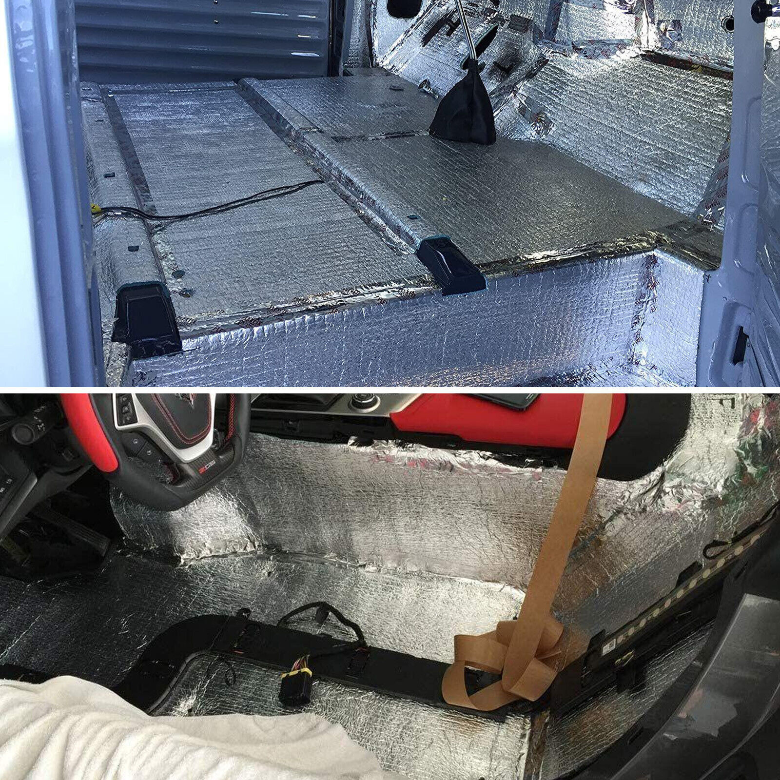 Description: ✎. Laminate thermal acoustic insulation is ideal for hoods/bonnets, engine bays/engine compartments, firewall/outer dash, van load space interiors, side panel insulation & many other interior and exterior applications. Package included: 1Pcs 2Mx1M 5mm Heat Sound Deadener Insulation Mat
