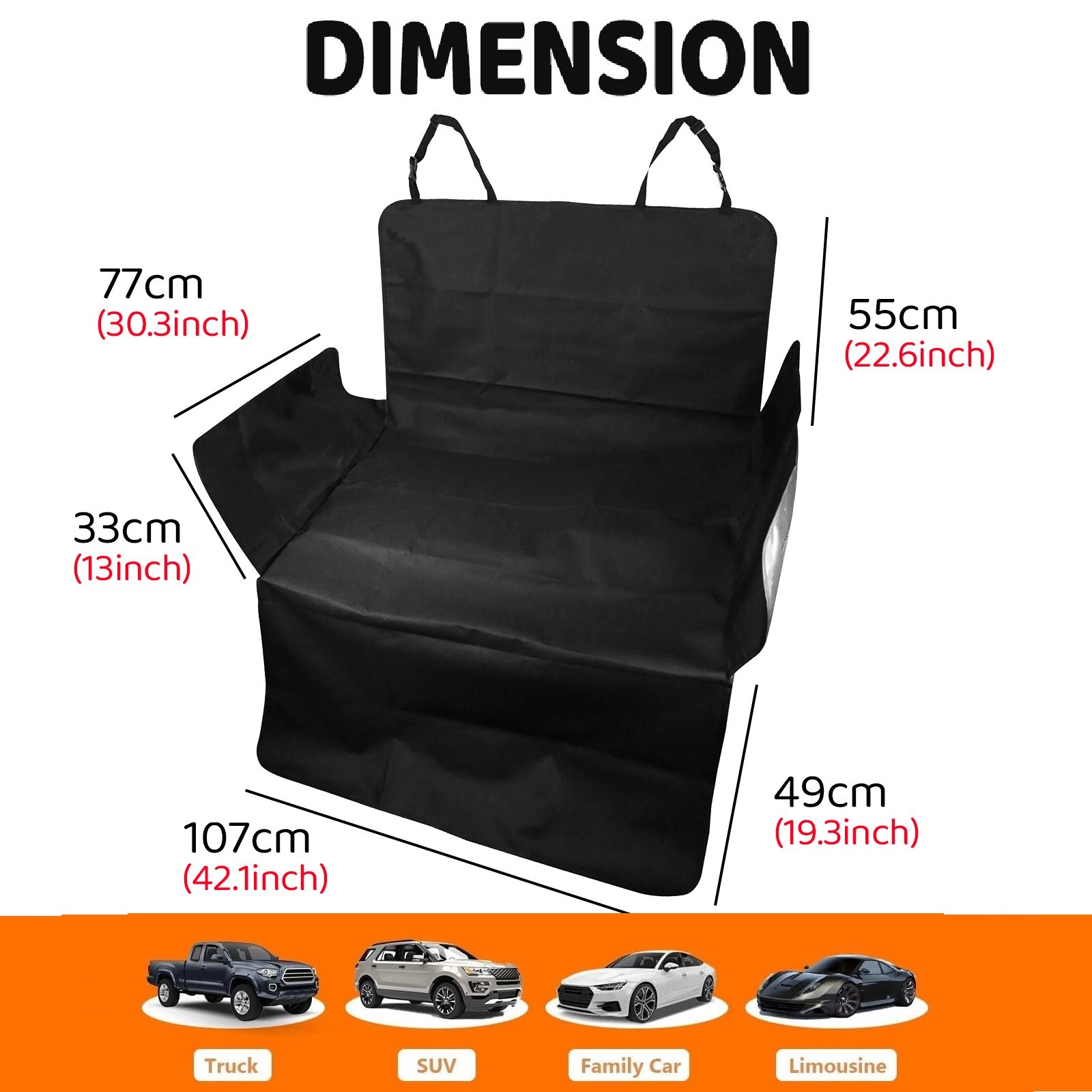 fits different vehicles like cars, trucks, SUVs! Supplies your pet dog with comfort while keeping your vehicle interior safe from scratches, fur, and urine (waterproof).Before you order the car seat cover , please try to measure your back seat size in advance or confirm it with us.It also perfects for protecting from damage caused by baby car seats; And for kids, it can protect the back seat from food and juice spills.