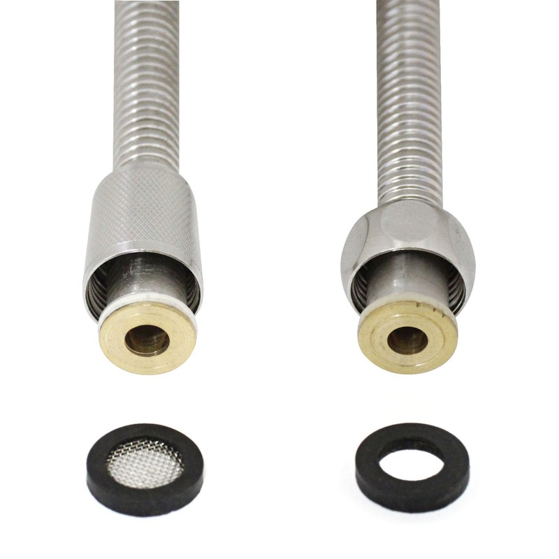 - OUTER HOSE: Made of the highest quality stainless steel SS304 and ELECTROPLATED in SATIN NICKEL for an extra layer of protection. The fittings are made of BRASS and plated in Satin Nickel.