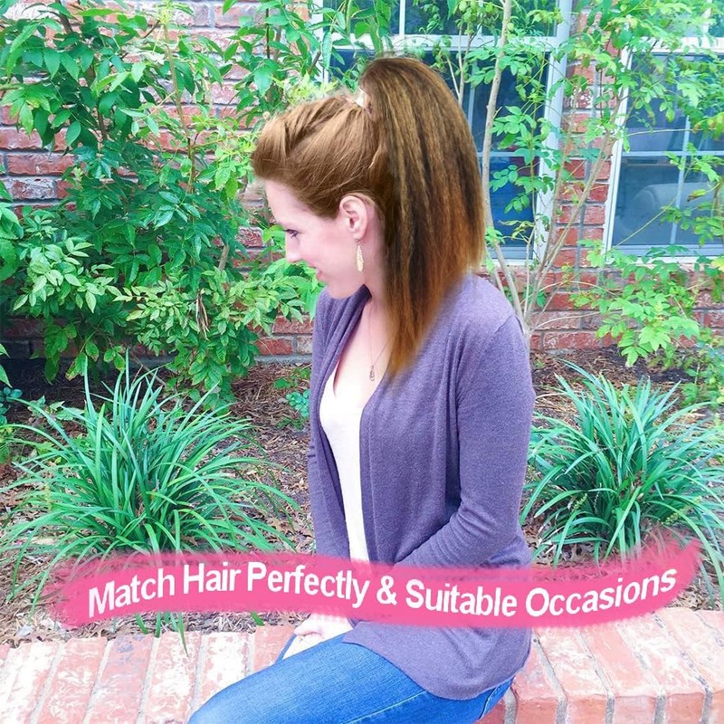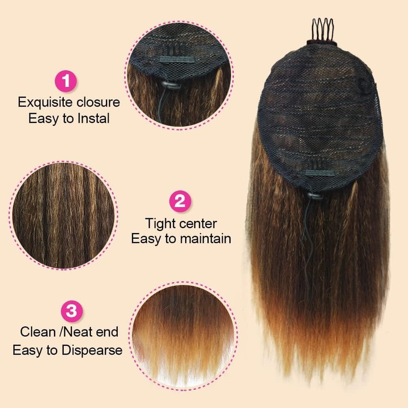 - 💕【Match Hair Perfectly and Suitable Occasions】Ombre borwn yaki ponytail extension is very fluffy, soft to touch and Looking natural, thick yaki ponytail extension match your hair texture perfectly. Yaki straight ponytail extension make you outstanding in the crowd at more occasions, drawstring yaki ponytail suitable for concert, fashion show, party, wedding, dating or daily use.