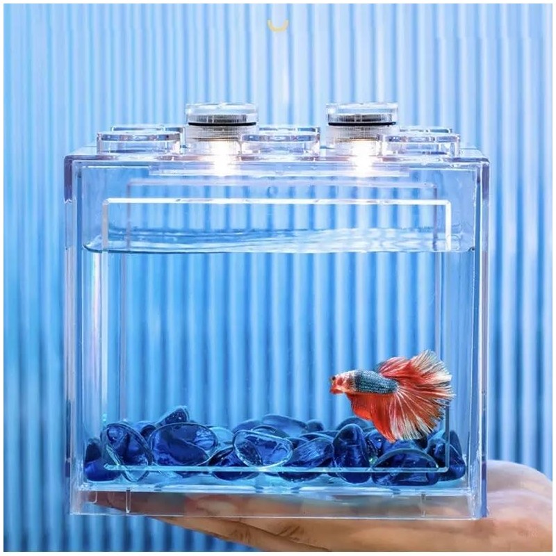 Modular Betta Fish Tank with LED Lighting & Mini Landscape Scaping - High-Clarity Desktop Small Aquarium for Betta Fish & Mini Turtles