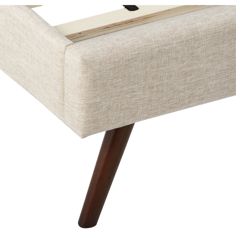 Accelerate your bedroom decor with the Loryn Platform Bed. Made with a solid wood frame upholstered in polyester fabric, Loryn features tapered wood legs, plastic foot glides, ten sturdy wood slats with a centered supporting bar and two support legs for enhanced stability. Due to the wooden slat support system, the use of a box spring is unnecessary. Loryn supports memory foam mattresses such as our Aveline series, and is compatible with one of our headboard styles: Jessamine, Terisa, Laura, Phoebe, Camille, and Josie. Perfect for mid-century modern, minimalist and contemporary bedrooms. Mattress not included.