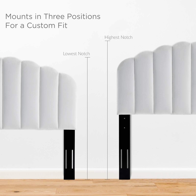 • TUFTED HEADBOARD - Featuring vertical channel tufting, a scalloped edge, and luxurious velvet texture, this upholstered full/queen headboard brings timeless appeal and sophistication to a bedroom
