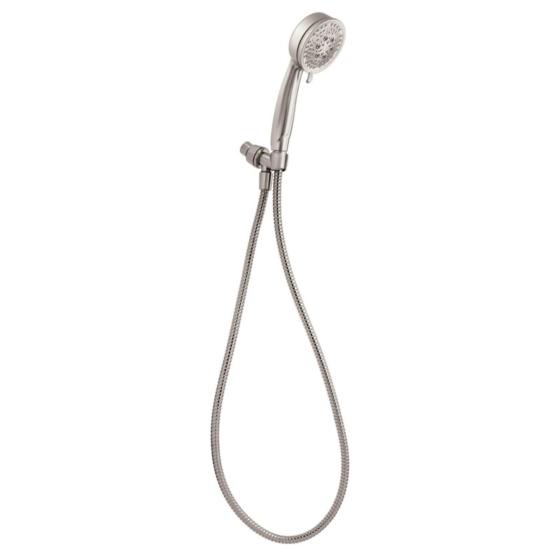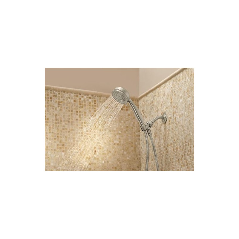 Moen 26015SRN Caldwell 4.25-Inch Five-Function Handheld Shower with Bracket and Hose, Spot Resist Brushed Nickel