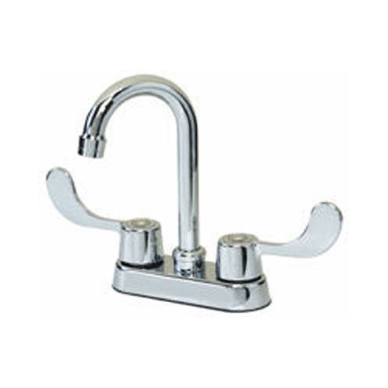 Chrome finish, 2 handle, bar faucet, ADA blade, washer less cartridge with 6 inch tall spout, 4 inch center, lead free.