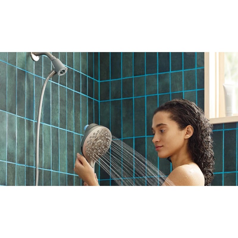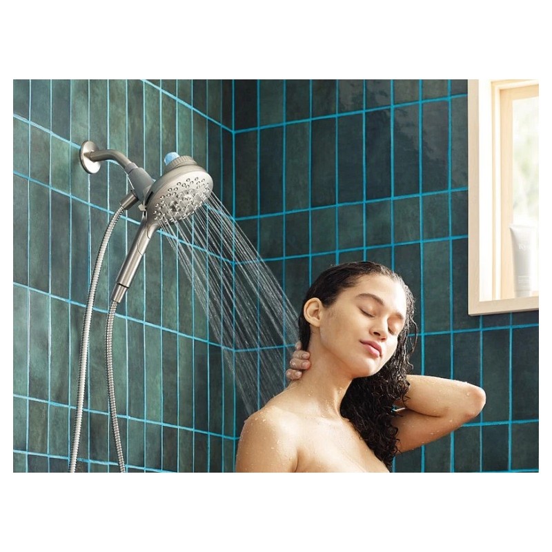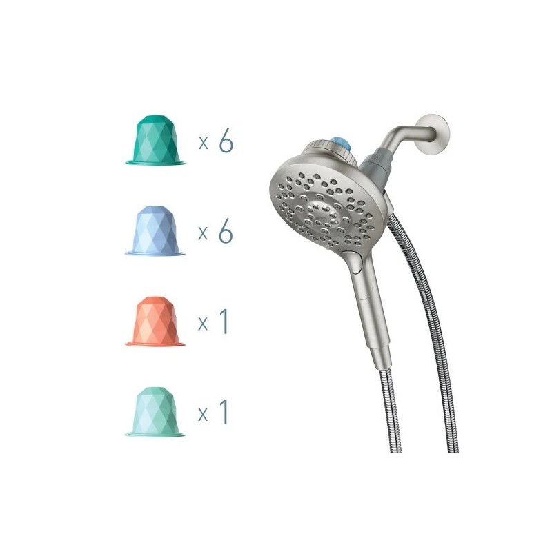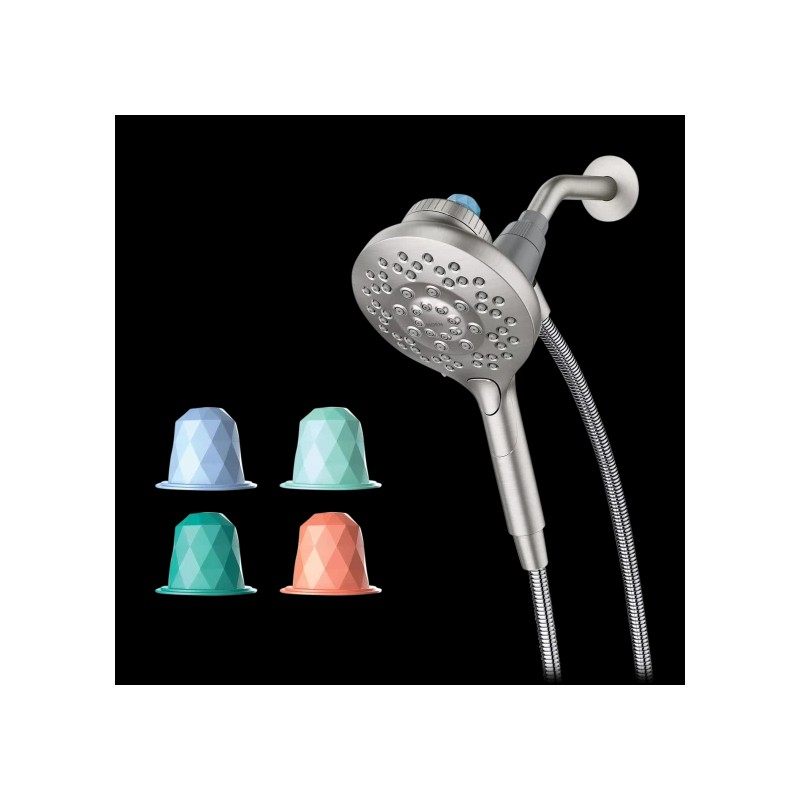 The Moen Aromatherapy Handshower creates a luxurious sensory experience. Six spray settings on the handshower provide optimal water pressure and excellent coverage. Add an INLY Aromatherapy Shower Capsule to your routine and infuse the shower with essential oils and spa-inspired fragrances. Relax. Rejuvenate. Reinvent your time in the shower with Moen.