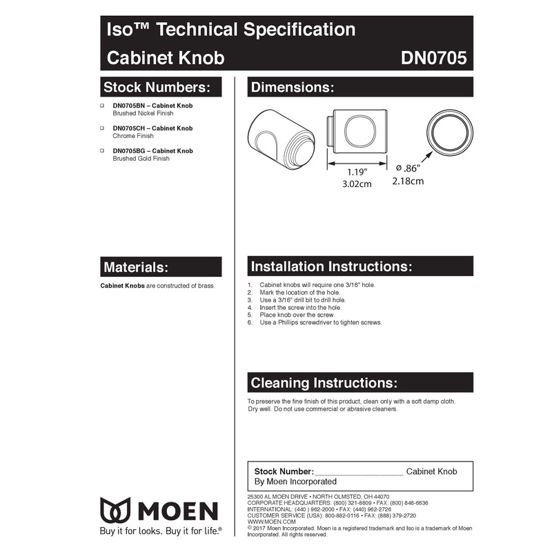 Moen DN0705BG Iso Drawer Knob, Brushed Gold