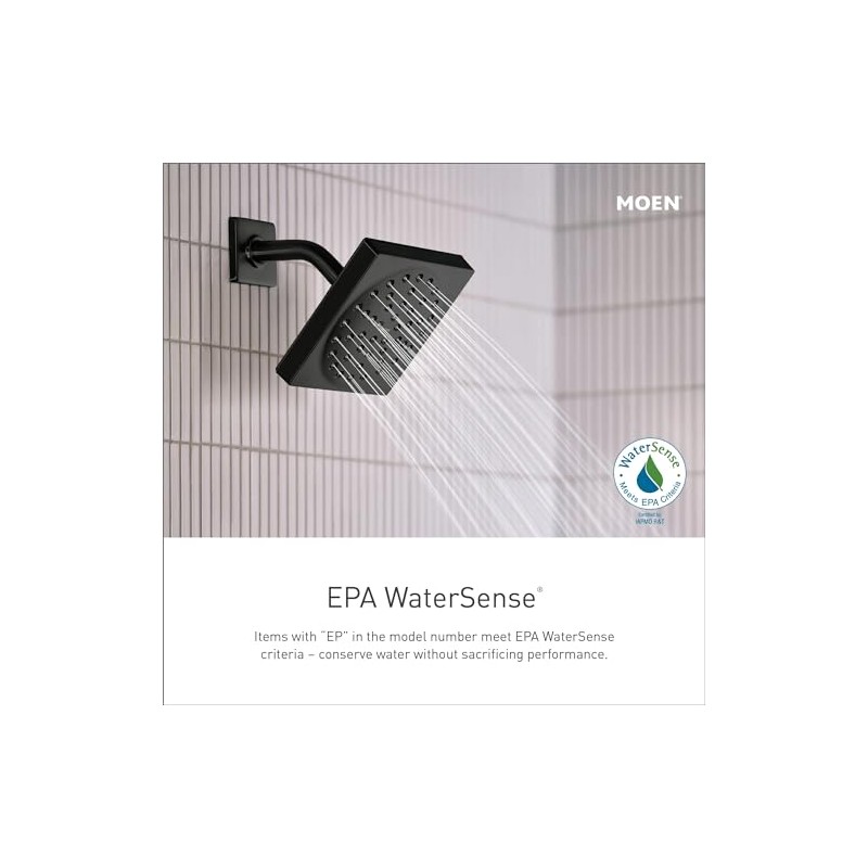 Moen S6365EPBL Voss 6" Single-Function Eco-Performance Rainshower Showerhead with Immersion Technology, Matte Black