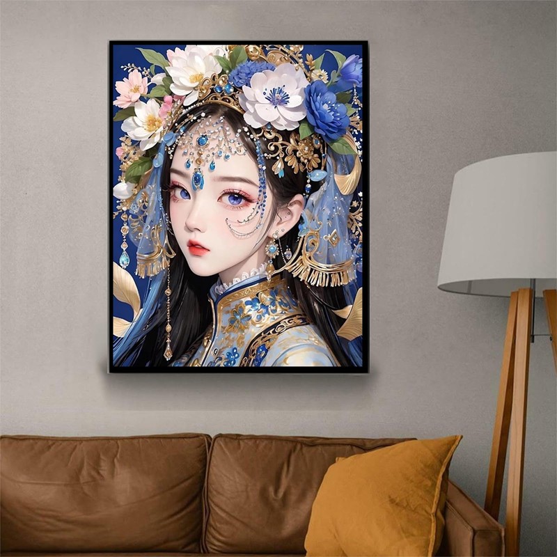 MOER SKY Diamond Painting Kits for Adults Beautiful Chinese Ancient Costume Girl 5D Diamond Art Easy for Beginner Round Full Drill Gems Cross Stitch Craft Hobby Home Decor 30x40cm