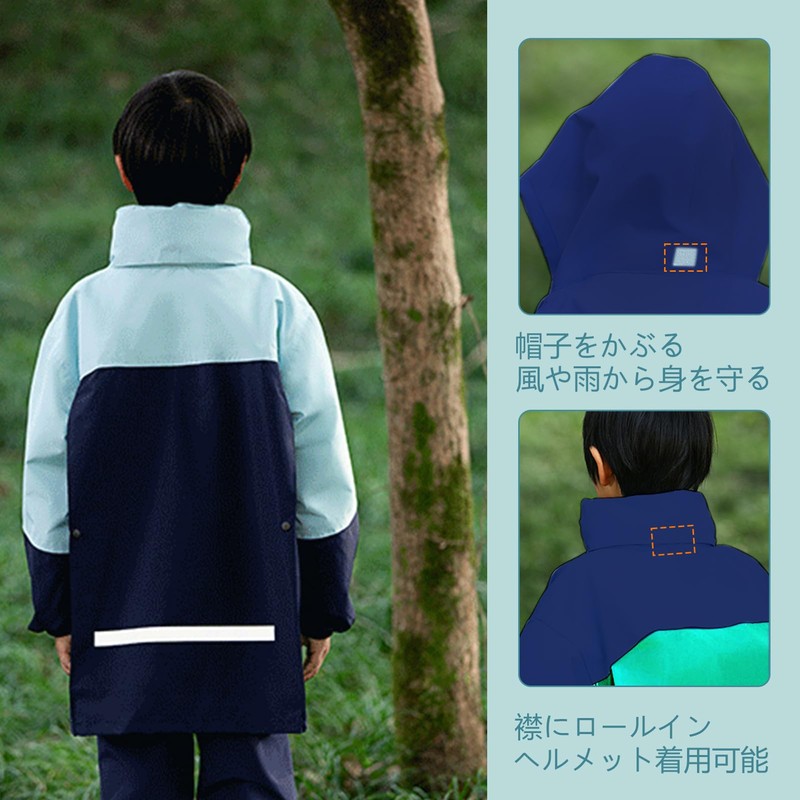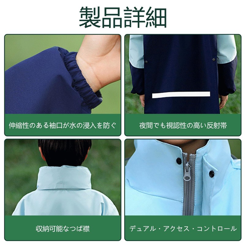 Moerstar Raincoat, Kids Top and Bottom Set, Poncho, Rain Suit, For Children, Girls, Boys, Kappa, Elastic Sleeves, Compatible with School Bags, Transparent Window, Windproof, Waterproof, High Neck, For