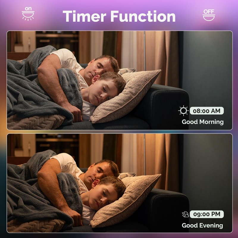 - 【Timer/Schedule】Create a personalized circadian rhythm to simulate natural lighting throughout the day, promoting better sleep and productivity. Set timers to automate your lighting, ensuring the perfect ambiance from morning to night.