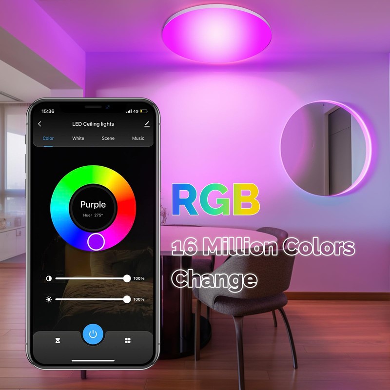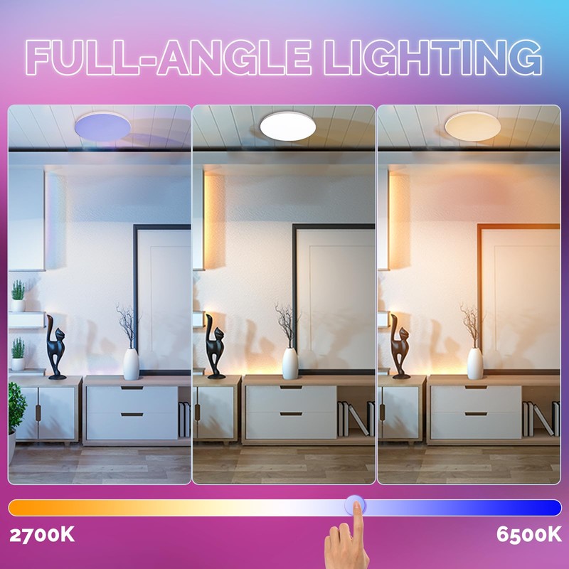 - 【Control from Anywhere】Can control the led ceiling light anywhere you like.When you are outside,you don’t have to check whether every lamp is off or not, just one-tap control on your Smart Life App.