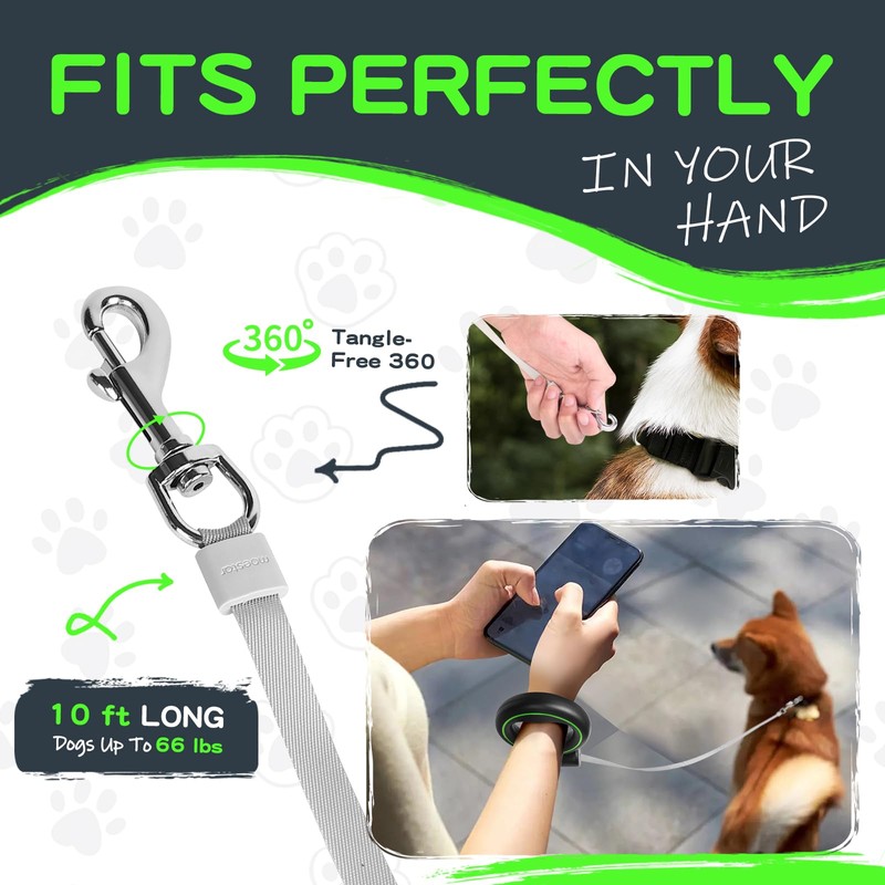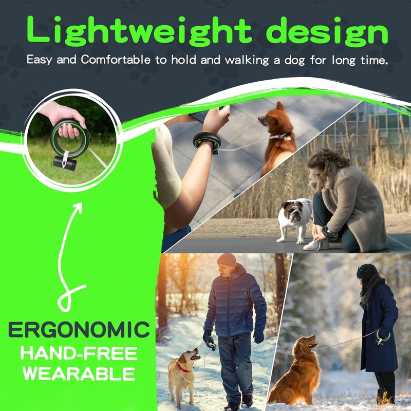 - 360° no Tangle:Wrist retractable dog lead is designed with a new U-shaped retractable hole, which makes it easier and smoother to retract during daily use, allowing your dog to move freely around you.