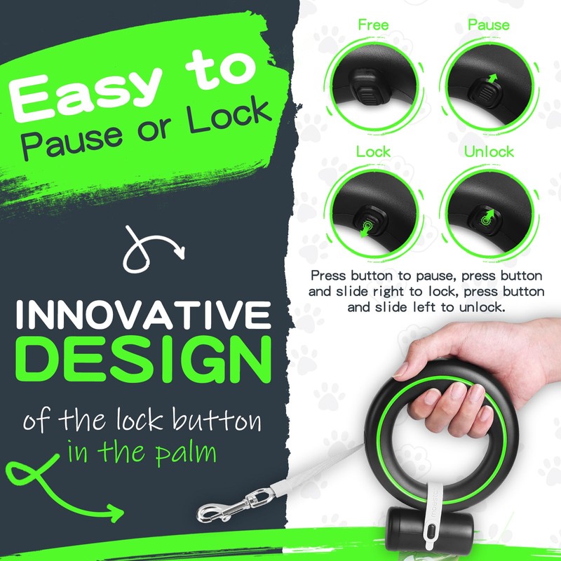 - Easy to Operate: Dog retractable leash equipped with a one-touch latch button, which can be easily braked, paused and locked with just your index finger, enabling timely operation to avoid pet chasing and keep you and your dog safe.