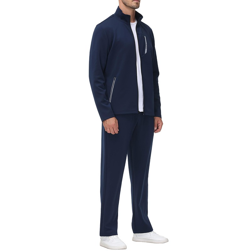 - Feature: Men outdoor athletic track suit with full zip closure,stand collar can protect your neck,long sleeve top and straigh leg jogger pant,zipper utility pockets on both track jackets and pants,convenient and safe storage some item,such as keys,card and phone
